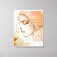 A line art illustration of a woman's face in bronze, gold and streaks of gold in the background colors. Surrounding the face are a couple of hand-drawn lines, wisps and tendrils in a bronzy gold color. The watercolor background have soft pink, peach