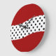 Modern wall clock with beautiful red, black, and white color combination and pretty polka dots on the clock face. Designed for any kitchen, bedroom, den, or dorm room. Created for ladies or girls and let's you decorate your walls in style.