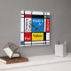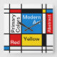 Modern wall clocks with colorful Mondrian inspired geometric abstract art design and bold typography on the clock face in a modern wall decor clock that will liven up any room with some character and style. Designed for a kitchen, dining room, living room, or any place in your house you want to decorate in a stylish way.