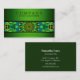 Stylish modern business card with piece of a green mandala showing on the front with a green background. Click customize to have more control over font choices and the use of text space.