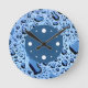 Cool water drops wall decor clocks suitable for your bathroom wall in shades of blue with splashes of water graphic art image as a background.