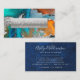 A sparkly, faux silver foil rectangle with calligraphy script typography overlays a rich, silver veined, turquoise blue, and yellow orange watercolor background on this chic, elegant, modern business card. Personalize with your full name and business on the front. Fill in the dark textured blue watercolor back side with your phone numbers, address, email, website, and social media accounts. Makes a chic, professional, and stylish statement wherever you go.