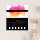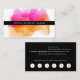 Chic watercolor business cards feature your name or company name layered on a blooming inkblot illustration in bright, colorful sunset hues of fuchsia pink ad goldenrod. Add your full contact information to the back in white on crisp black. Includes your custom loyalty offer (shown with "enjoy 20% off any service after five visits"), and six punchouts.
