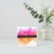 Chic watercolor business cards in a unique square format feature your name or company name in white on black, layered on a blooming inkblot illustration in bright, colorful sunset hues of fuchsia pink ad goldenrod. Add your full contact information to the back. Includes three social media icons and a template field for your username or handle.