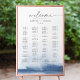 This modern watercolor blue alphabetical seating chart poster is perfect for a stylish contemporary wedding. This sign can be used to organize your guests alphabetically or by table number by changing the names of the headings. The minimalist, classic and elegant design collection features simple water color paint brush strokes in pretty jewel tones. This wedding sign includes enough room for up to about 120 guests. Make room for more (or less) guests by clicking the "customize" button and decrease or increase the size of the font. In addition to the placement of each guest, personalize this sign with the names of the bride and groom and the wedding date.