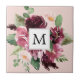 Modern Watercolor Flowers Monogrammed Ceramic Tile