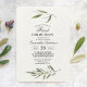 Plain white envelopes are included with paper invitations and will come to fit the invitation size you select. If you don’t need the envelopes, you may choose to not receive them by selecting the dropdown below "Envelopes" and choosing "None." If you’d like to have a design on your envelopes, you can browse all of these available envelopes to find the design that complements your Modern Watercolor Green Olive Branch Invitation.