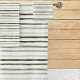 Modern watercolor shades of green stripes bathroom towel set set on a white background. Visit our shop to view a matching shower curtain.