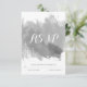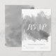 Modern abstract watercolor splash grey winter wedding RSVP reply/response card featuring a hand painted watercolor paint splash with texture in tones of grey, trees in white with snow , snowflakes and text in white and grey.