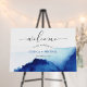 An easy-to-customize wedding foam board design featuring an unique watercolor indigo blue background and a big "welcome" in an elegant script, perfect for a stylish contemporary wedding.