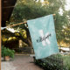 A soft teal or turquoise watercolor backdrop provides the canvas for a cute and contemporary monogram house flag, featuring initials and name. The monogram's black and white color palette, composed of clean modern fonts mixed with a script font, exudes a simple yet fun charm. Whether you want to use your first name or last is up to you on how you want to rock this in your space! You may find that your initial may sit lower or higher than it should once you change the letters. If you go into the edit tool, you can easily move these around. You may also find that it looks better in a lowercase or upper case. Personalized Family Name Cute Modern Teal Blue Turquoise Watercolor Monogram House Flag Home Decor