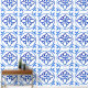 Modern Watercolor Mediterranean Blue Tile Wallpaper