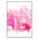 Modern abstract watercolor splash pink flowers floral wedding table number place card featuring a hand painted watercolor paint splash with texture in tones of pink and hot pink, flowers in white and pink and text in white and grey. This elegant and stylish casual wedding design is a completely customizable template perfect for your spring, summer or fall/autumn wedding. Note that this is only an image of watercolor and not real texture.