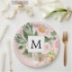 Modern Watercolor Pink Flowers Monogrammed Paper Plates