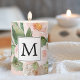 Modern Watercolor Pink Flowers Monogrammed Pillar Candle