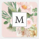 Modern Watercolor Pink Flowers Monogrammed Square Sticker