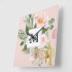 Modern Watercolor Pink Flowers Monogrammed Square Wall Clock