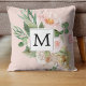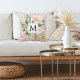 Modern Watercolor Pink Flowers Monogrammed Throw Pillow