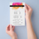 Vibrant watercolor flyer card design displays your services, price list or business information beautifully. Design features a watercolor inkblot logo in fuchsia pink and golden orange fern, framing your name and/or business name. Includes four customizable headings and body text fields, and space for your business contact information along the bottom. To adjust layout, enter your text and then use the Customize function to change positioning and font sizes.