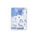 A blue and white watercolor painting of the village of Oia on the Greek island of Santorini. Original art by Nic Squirrell.