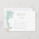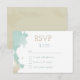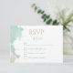 Trendy minimalist wedding RSVP card done in white background, with graphics of tan and mint green watercolor splashes, on the left side. Personalize the custom text for your special day. Matching products are available.