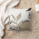 Modern throw pillow features an artistic abstract watercolor design in black and white with gold and neutral accents. A stylish modern design features watercolor leaves and a geometric circle composition with an inquisitive hummingbird in the upper right-hand corner. Inspired by nature, this modern abstract composition is built on combinations of repeated leaves and circles, which are overlapped and interlaced to form an intricate design. A modern decorative pillow for your living room or family room couch, a stylish abstract cushion for you bedroom or favorite chair, or a modern home gift for any occasion.