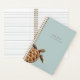 A modern sea themed personalized notebook with a watercolor illustration of a sea turtle on a sea green background. Personalize with your name in brown serif font. Makes a perfect for sea life lovers