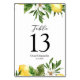 Modern Watercolor Yellow Lemons & Leaf Table Number
