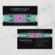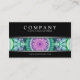 Stylish modern business card with a mostly black background. Between the silver colored lines the details of a water lily flower mandala show, providing a bright pop of color, making this contact card stand out from the crowd. Click customize to have more control over font choices and the use of space for text.