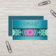 Stylish modern business card with piece of a pink, green and blue flower mandala showing on the front with a blue background. Click customize to have more control over font choices and the use of text space.