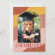 Simple arch frame photo graduation announcement. You can customize it with the graduate's name, school name, or date. Trendy retro wave background in shades of gold, orange and terracotta. All colors are editable to change to your school or party theme colors. Hand lettered text overlay "The Best Is Yet To Come".