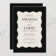 Plain white envelopes are included with paper invitations and will come to fit the invitation size you select. If you don’t need the envelopes, you may choose to not receive them by selecting the dropdown below "Envelopes" and choosing "None." If you’d like to have a design on your envelopes, you can browse all of these available envelopes to find the design that complements your Modern Wavy Black And Cream Wedding Invitation.