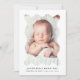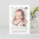 Celebrate your baby’s arrival with this gender-neutral, modern birth announcement! The minimalist design showcases your little one’s vertical photo beautifully framed in a playful wavy frame on a white background. Add your baby’s name and birth stats below in stylish, contemporary fonts. The back features a horizontal photo with space for your custom message, making it easy to share a sweet note with loved ones. A simple yet charming design with a subtle retro vibe!