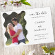 A stylish photo save the date invitation announcement featuring your photo in a modern wavy edged frame and a script font. Change any of the text to customize.