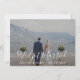 Announce your recent wedding to family and friends! This modern wedding announcement card design features a horizontal photo of the new husband and wife on the front with a white brushed "We Eloped!"