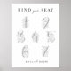 This is simple minimalist elegant 7 table Seating Chart board for wedding. You can customize this seating chart with your guest lists for each table. You can also change background or font colors to better suit your wedding theme, just click "Customize further". There are seating plans with the same design for 3, 4, 5, 6, 7, 8 and 9 tables.