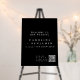 This sleek and contemporary wedding welcome sign features a bold black background with crisp white text, creating a dramatic yet elegant statement. The minimalist serif typography adds a refined touch, making it perfect for modern, city-chic, and upscale weddings. A QR code seamlessly integrates technology, offering guests easy access to the wedding program—ideal for tech-savvy couples who appreciate a streamlined experience. Designed for those who love sophisticated simplicity, this sign sets the tone for a classy and timeless celebration.