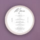 The minimalist design ensures a clean and timeless aesthetic, making it suitable for various wedding themes. The circular layout of the menu provides a unique and stylish touch to your table settings. With "menu" beautifully scripted in calligraphy, this card serves as a tasteful introduction to the culinary delights your celebration has to offer.