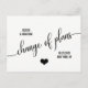 Elegant and modern Wedding CHANGE THE DATE / CHANGE OF PLANS / POSTPONE postcards to send your guests. White script calligraphy. Heart in middle. Online personalized templates for ease of editing. Add your text in front and back of card. Contact designer for special requests.