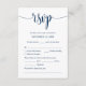 This is the beautiful Modern, Calligraphy, Romantic RSVP (Respond) Enclosure Card, in classy navy blue theme, where you can edit, change colour and format it as per your design requirement, with meal options, reserved seats, number attending and song request option.