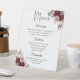 Modern Wedding Dinner Menu Burgundy Blush Floral Pedestal Sign