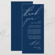 Share the love and show your appreciation to your guests, in Navy Blue, when they sit down at their seat and read this personalised charming thank you place card in black and white themed. It's a wonderful way to kick off your special day celebration! This card is sure to set the tone for an unforgettable event. The thank you card features modern design script theme, adding a touch of timeless elegance to your celebration. Designed by TeeshaDerrick