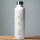 Modern Wedding Groom Name Date Orff white Text Water Bottle