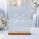This Dusty Blue Guest Book sign features soft script typography on a frosted, glass-like surface paired with a natural wooden base. The minimal design blends beautifully into modern, classic, and garden wedding settings while adding a refined, high-end touch to your décor.