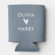 Modern Wedding Love Heart Can Cooler | Dusty Blue