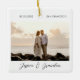 Celebrate your first Christmas as newlyweds or share the joy when gifting these modern and minimalist Christmas holiday ornaments. This design features your wedding photo of choice, names in calligraphy script and wedding date and location (simply delete what you don't want). A romantic keepsake for you or gift for parents or grandparents.