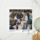 Square wedding thank you card personalized with a photo collage of five of your own lovely wedding photos. Add your names and wedding date in a modern black font. Thank you is written in a charming hand-written script on the bottom right corner. On the back you can write by hand a personal thank you message on the faintly lined background. Square photo collage wedding thank you card with a white background and black fonts.
