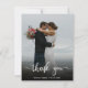 Modern Hand Lettered Wedding two (2) Photo Thank You Card. Modern Stylish wedding thank you postcard template featuring a full vertical photo on the front with the text "Thank You" in a hand lettered typography script font in white on the picture. Personalize the custom name and thank you message. If you prefer to handwrite your note, just delete the sample text to make more space. If You need help or matching item, please contact to me!