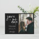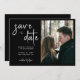Minimalistic engagement photo wedding save the date in simple black and white with a modern whimsical handwritten calligraphy script. +++++++++++ Suitable for any season stylish modern theme weddings.