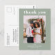 Modern Wedding Photo Thank You Sage Green Postcard